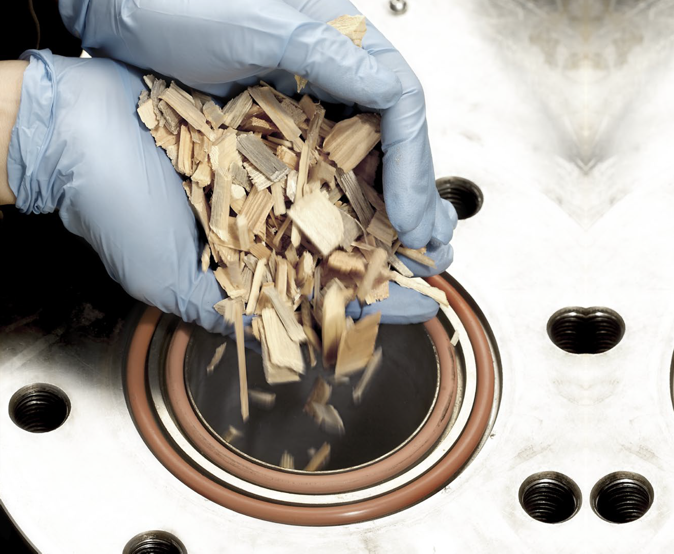 Pour commencer, les grumes sont amenées dans l'installation par les camions, qui sont d'abord pesés, puis envoyés dans le parc à grumes. Les grumes sont ensuite débarrassées de leur écorce dans une machine appelée "écorceuse". Une fois écorcées, les grumes sont soigneusement dirigées vers le système de convoyage primaire, où elles sont soumises à une série de procédures critiques. Les grumes passent par un scanner qui analyse et détermine les coupes les plus optimales à effectuer, en fonction de leurs dimensions et de leur qualité, afin d'en maximiser la valeur. Ces coupes sont ensuite effectuées au fur et à mesure qu'elles passent dans les machines. Une partie des déchets accumulés lors des processus d'écorçage et de sciage est transférée dans le camion des sous-produits, tandis que le reste est systématiquement collecté et réutilisé à la centrale thermique comme source d'énergie vitale pour certains processus de l'usine.